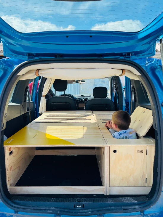 Els detalls també parlen de nosaltres: les cordes, que ajuden a mantenir-ho tot al seu lloc i aporten textura, i les muntanyes que ens envolten, que sovint plasmem als vostres vehicles en forma de motius gravats o retallats. El color acaba de donar personalitat a cada projecte, amb tonalitats que acompanyen la fusta i s’adapten als teus gustos perquè la teva furgo tingui una identitat pròpia.